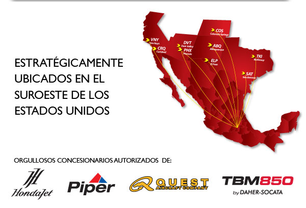 Cutter Aviation se encuentra estratégicamente ubicado en los destinos más importantes de la aviación privada en los Estados Unidos, cubriendo los estados de California, Arizona, Nuevo México, Colorado y Texas. Contamos con servicio de FBO, Ventas de Aeronaves, Servicio y Mantenimiento y Charter.